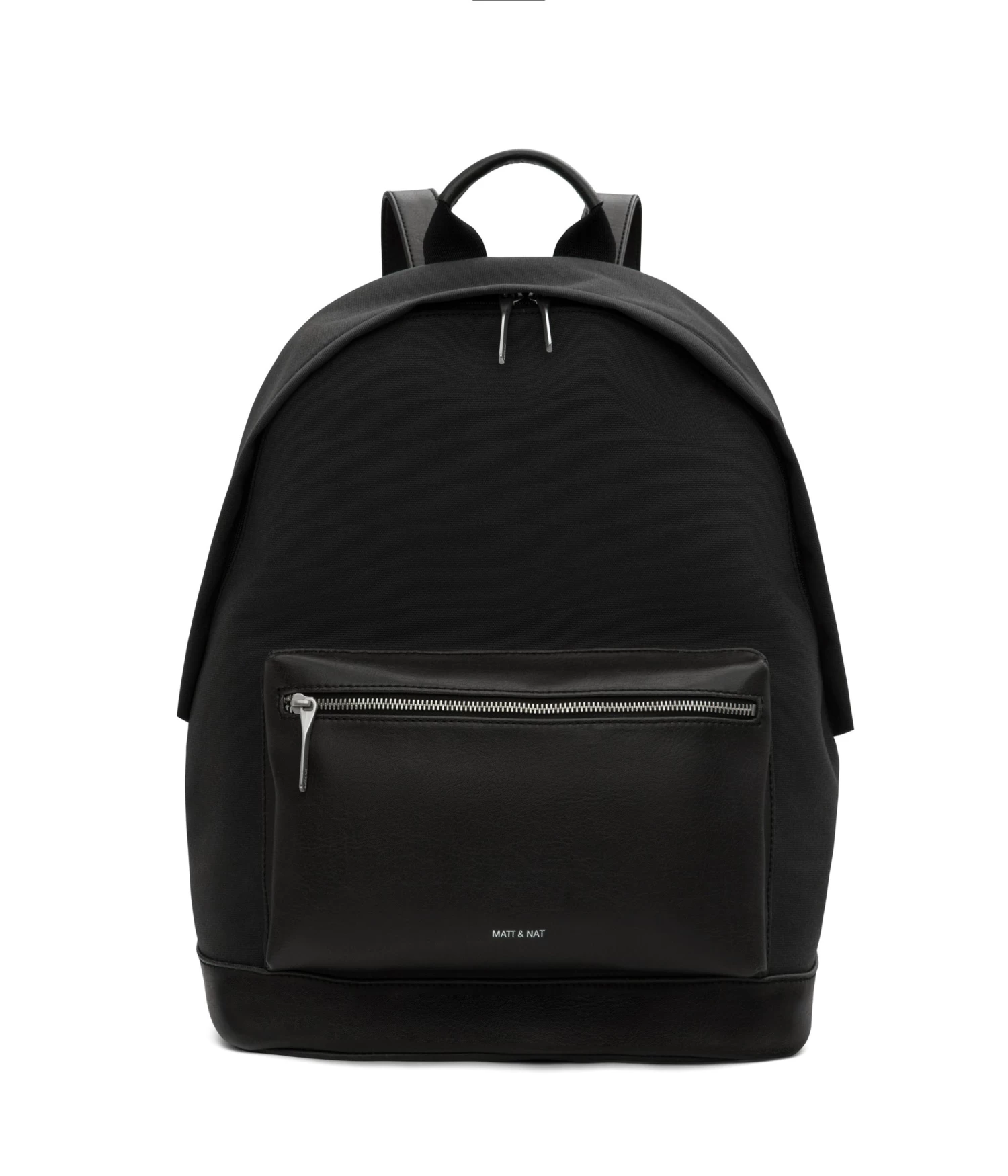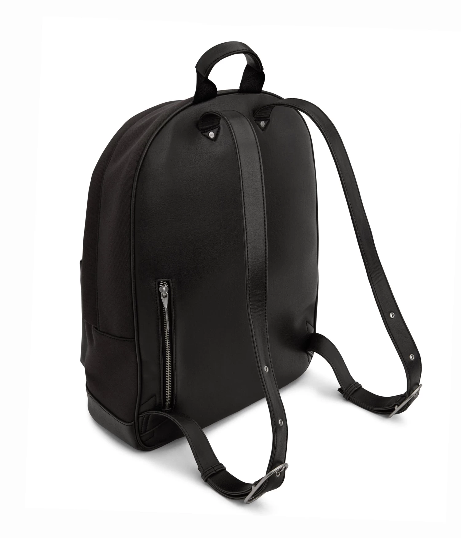 Backpack with adjustable shoulder straps and top main zipper closure. Front zipper pocket. Zipper pocket on back body. Fits a 15” laptop.