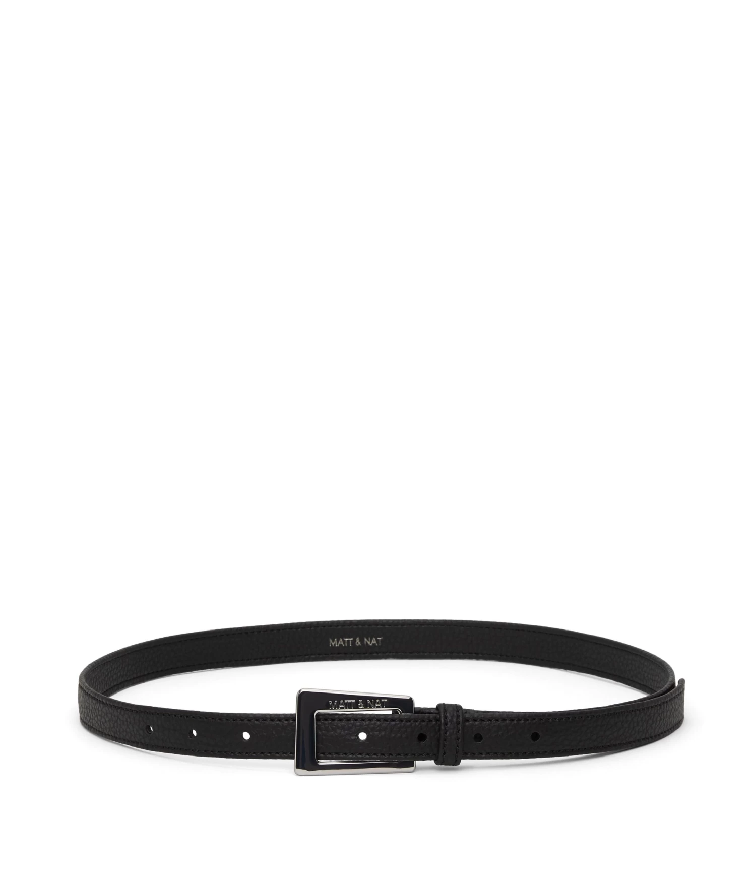 Regular waist belt with pin-stud asymmetric buckle fastening.