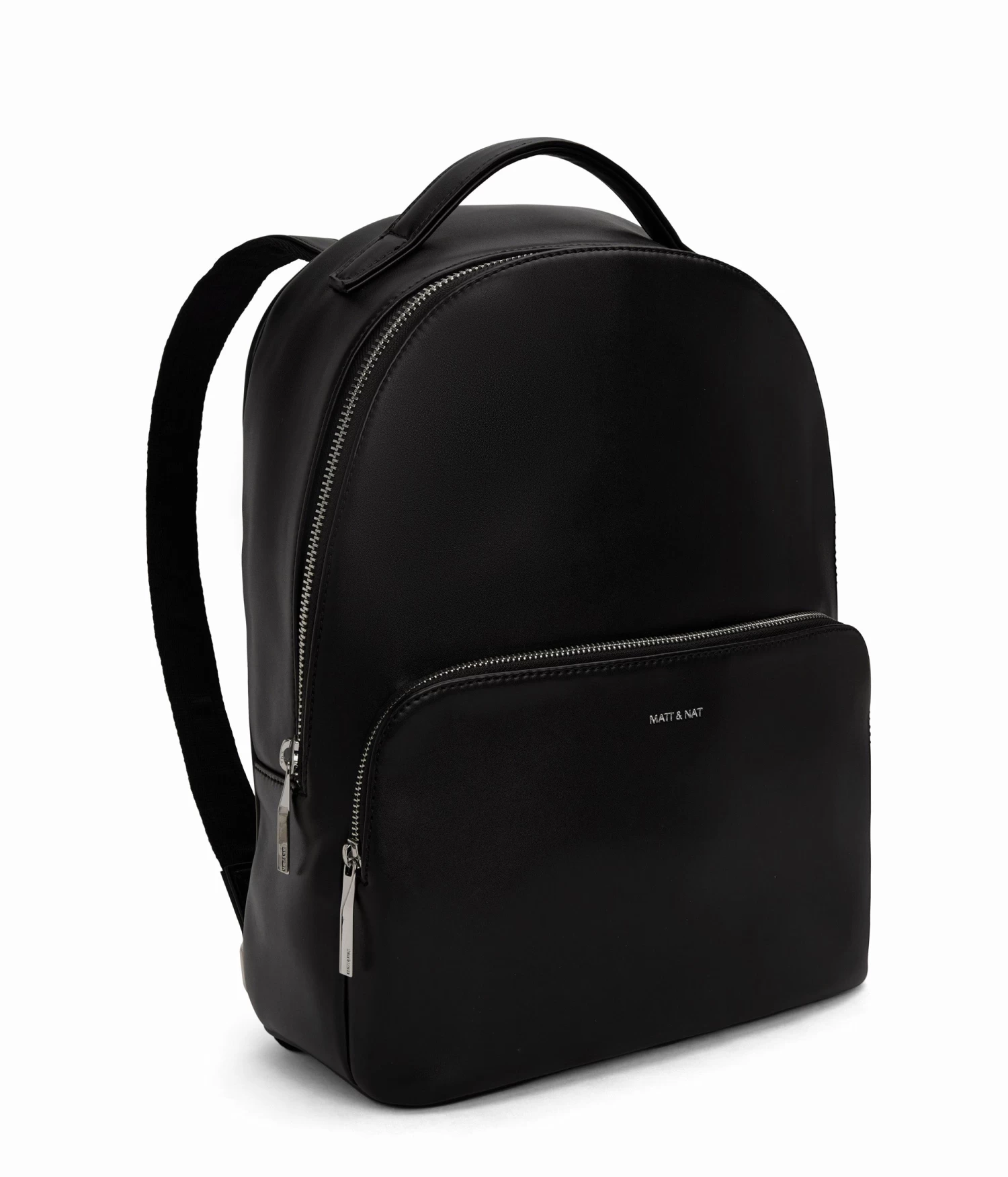 Backpack with adjustable shoulder straps, top handle to hand-carry, main compartment with zipper closure, and front zipper pocket.