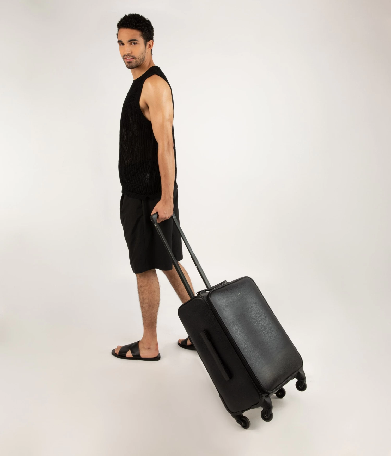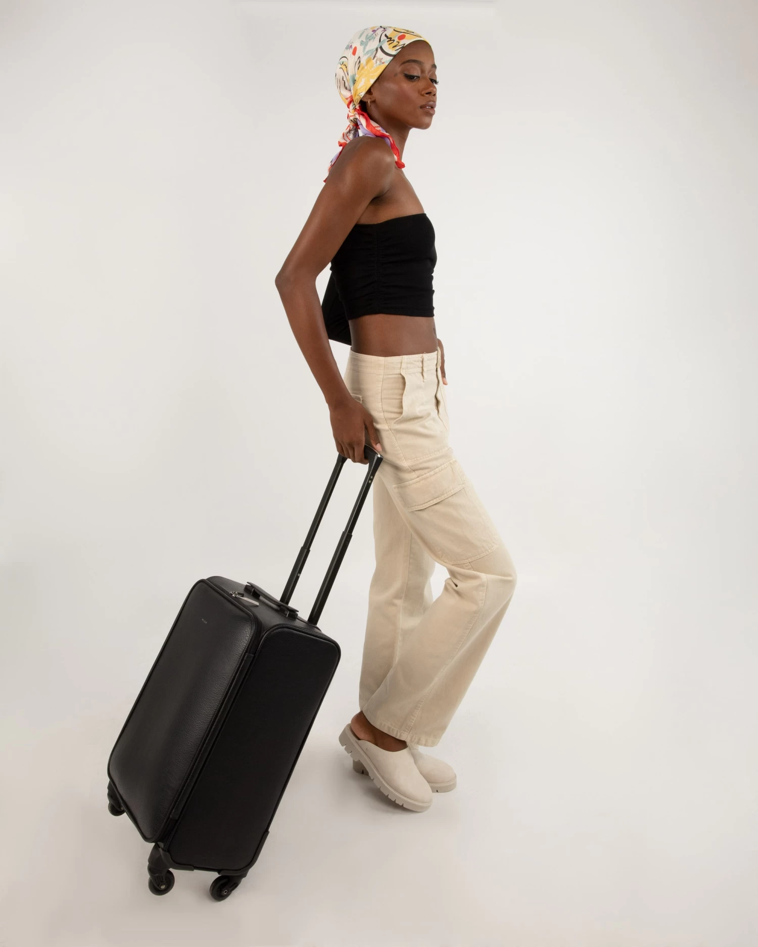 Carry-on luggage with double-zipper detail and double handle with an extendable easy-carry handle.