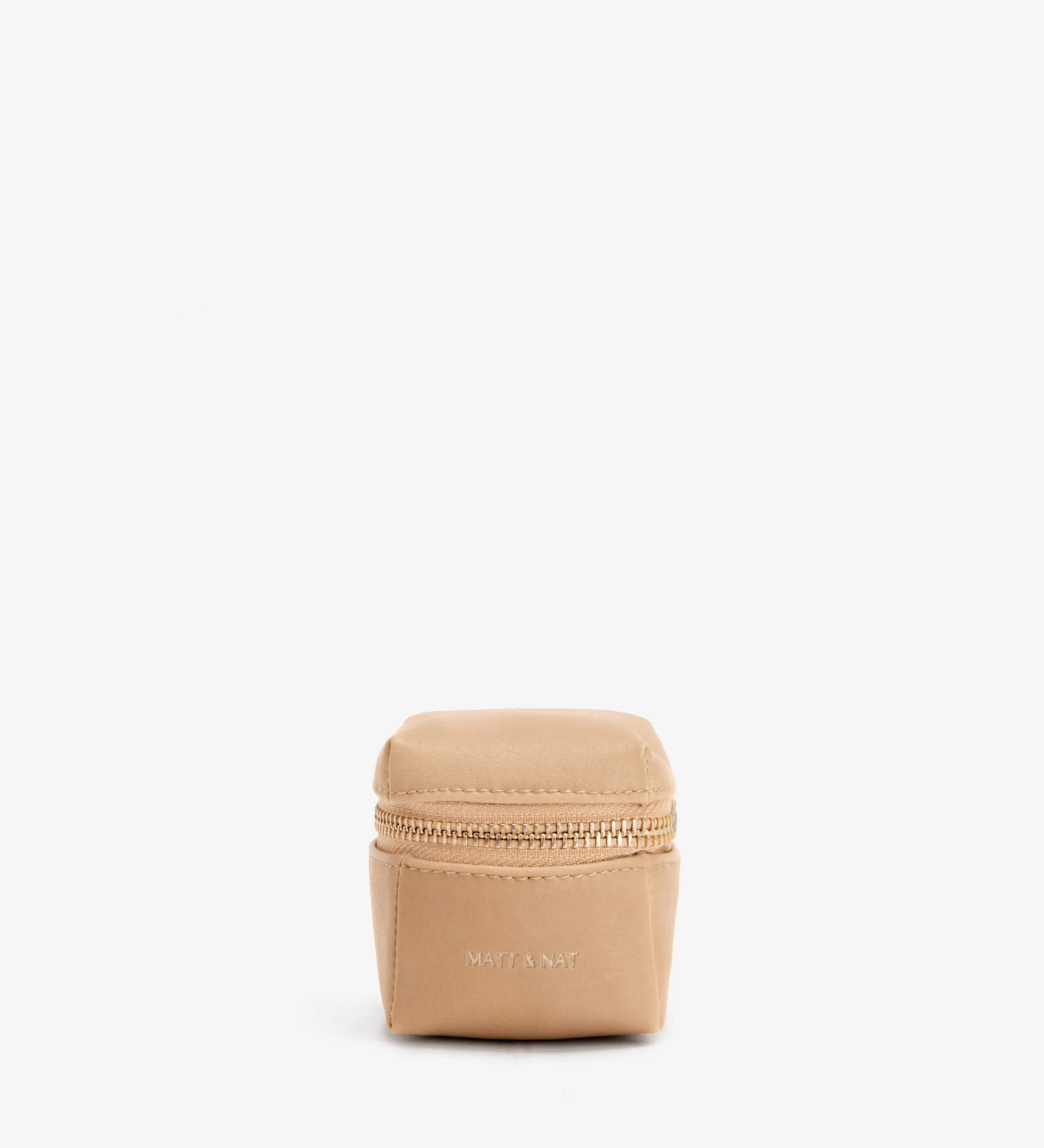 Small jewelry box with all around zipper closure and extra lining to protect the jewelry.