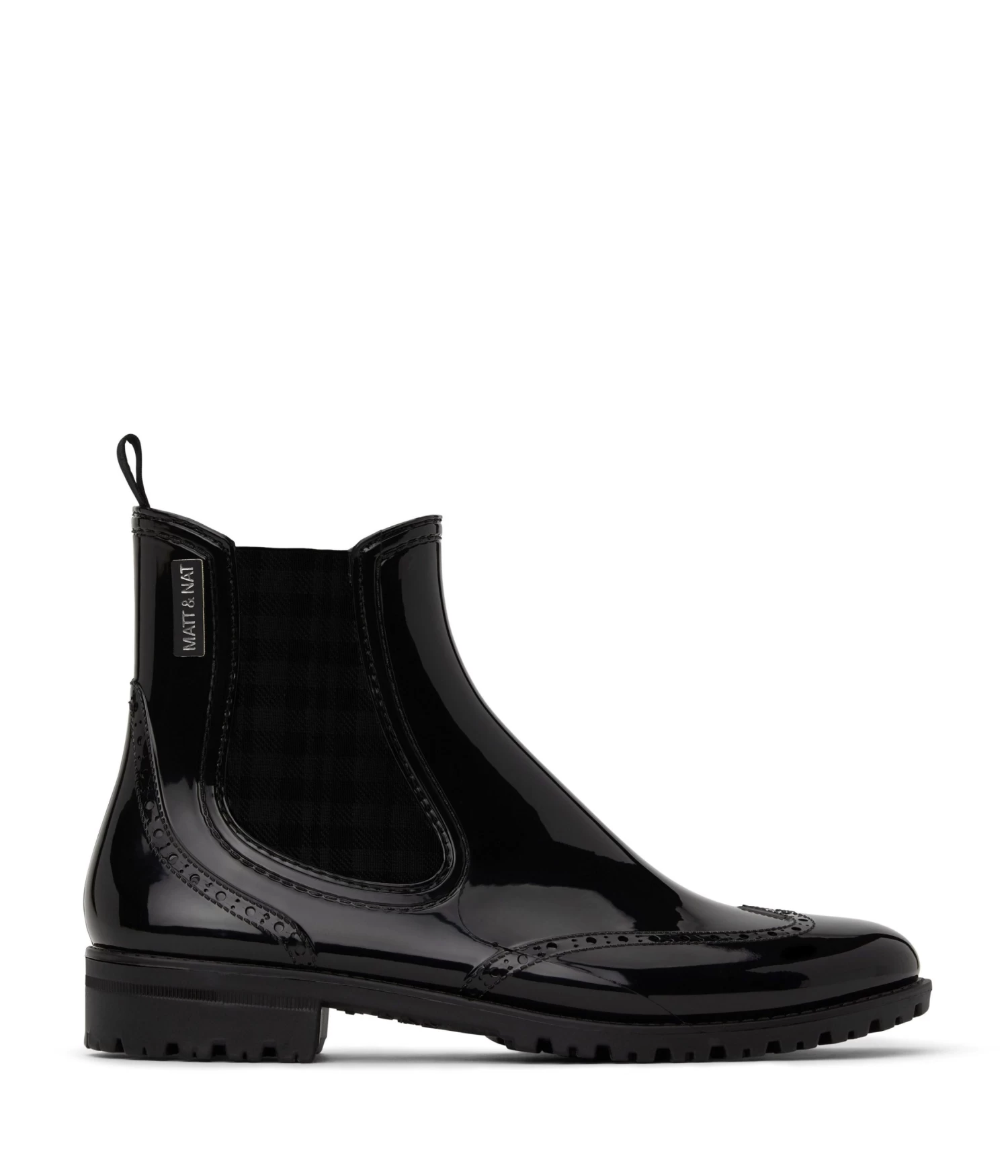 Women’s modern waterproof rainboot and MATT & NAT logo detail.
