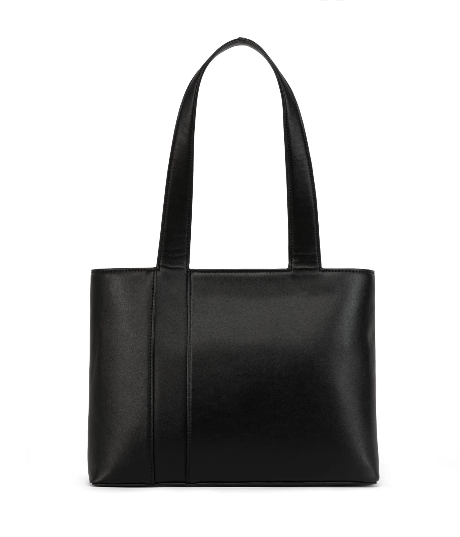 The tote has a top zipper closure for security and a large front pocket with a magnetic snap closure. Fits a 13” laptop.