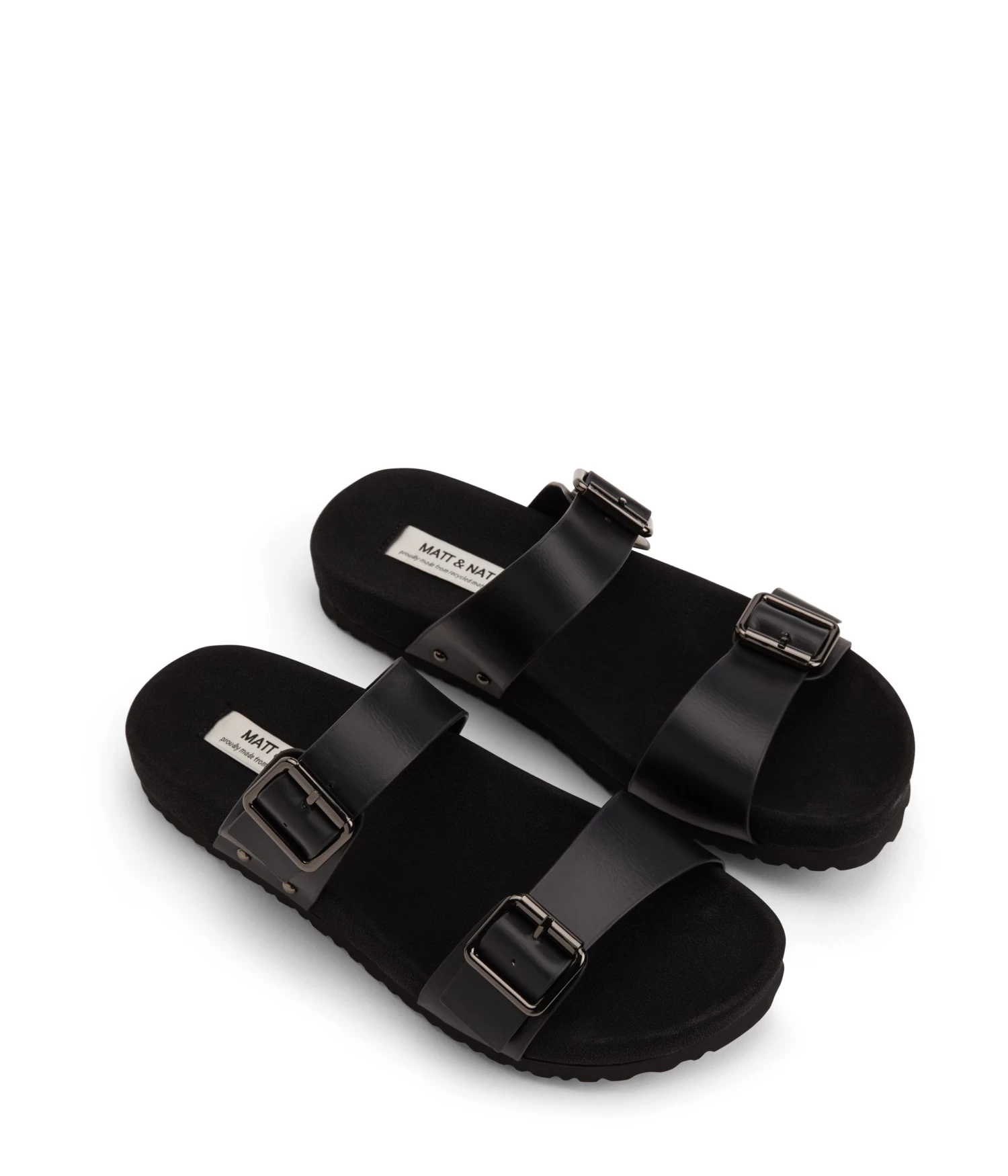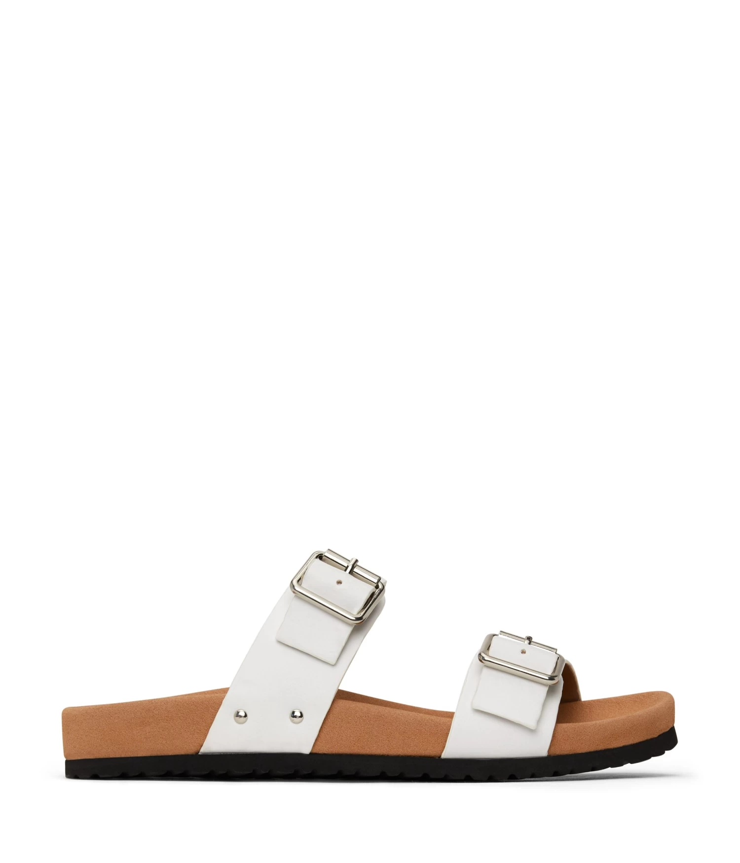 Women’s bohemian style comfort open sandal with a faux suede footbed and buckle straps.