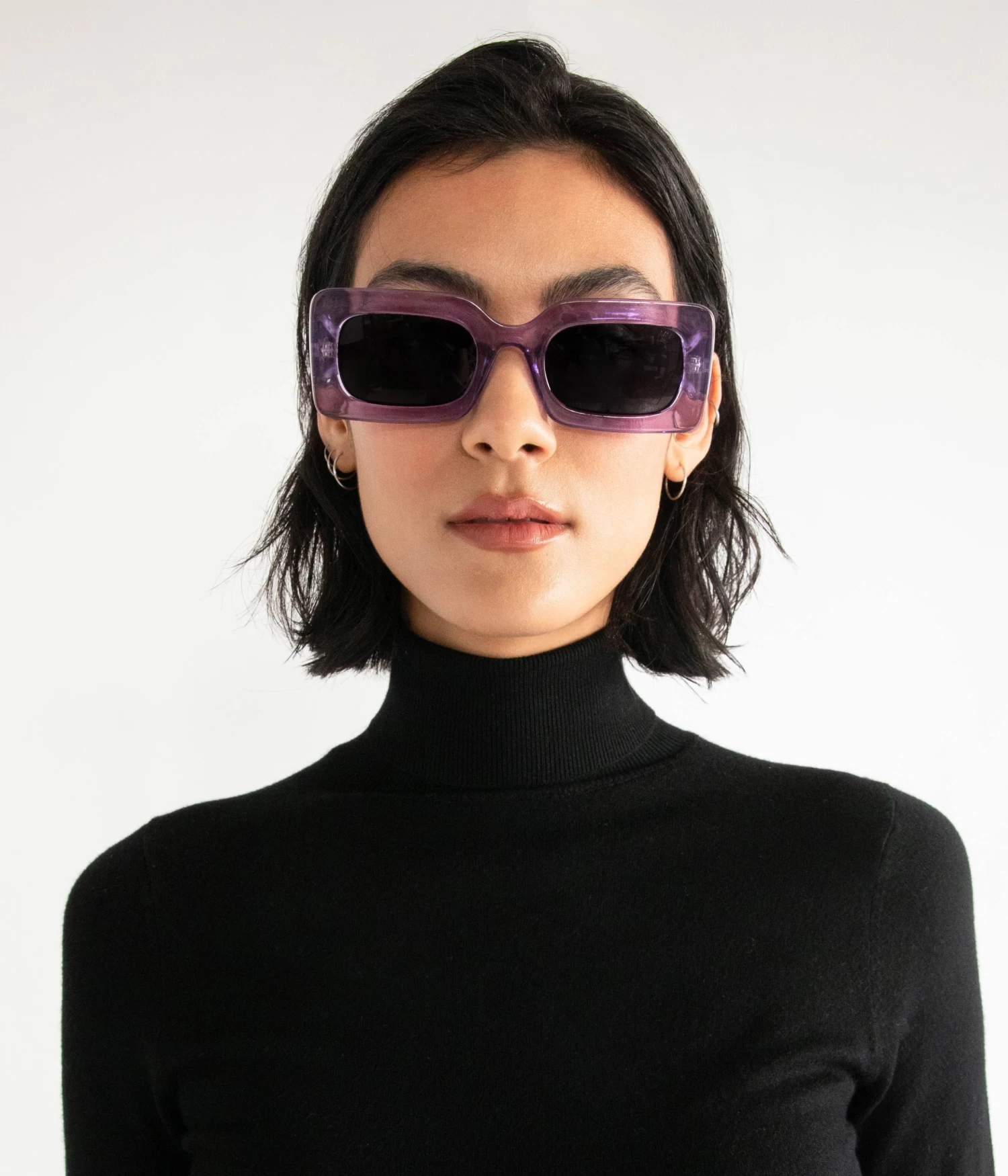 Recycled Shiny crystal frames, shiny crystal temples with polarized lenses.