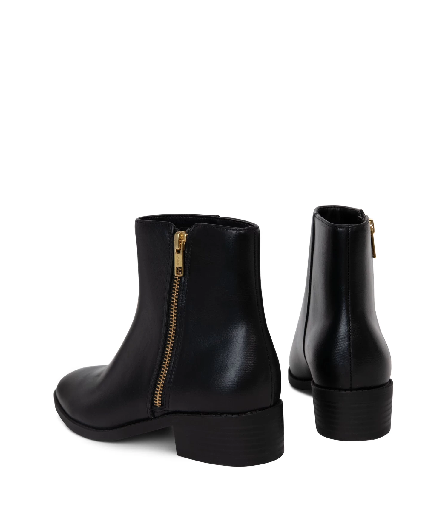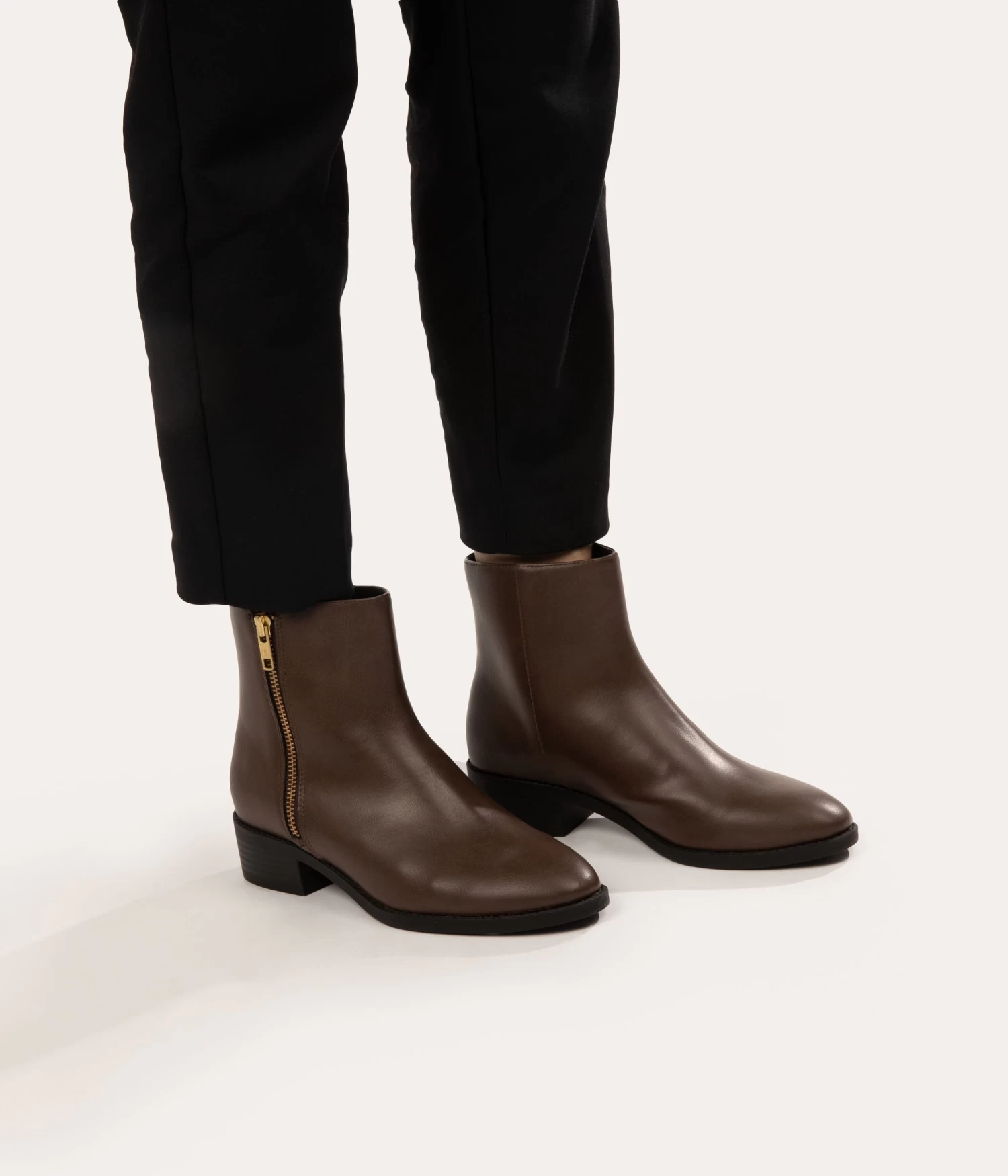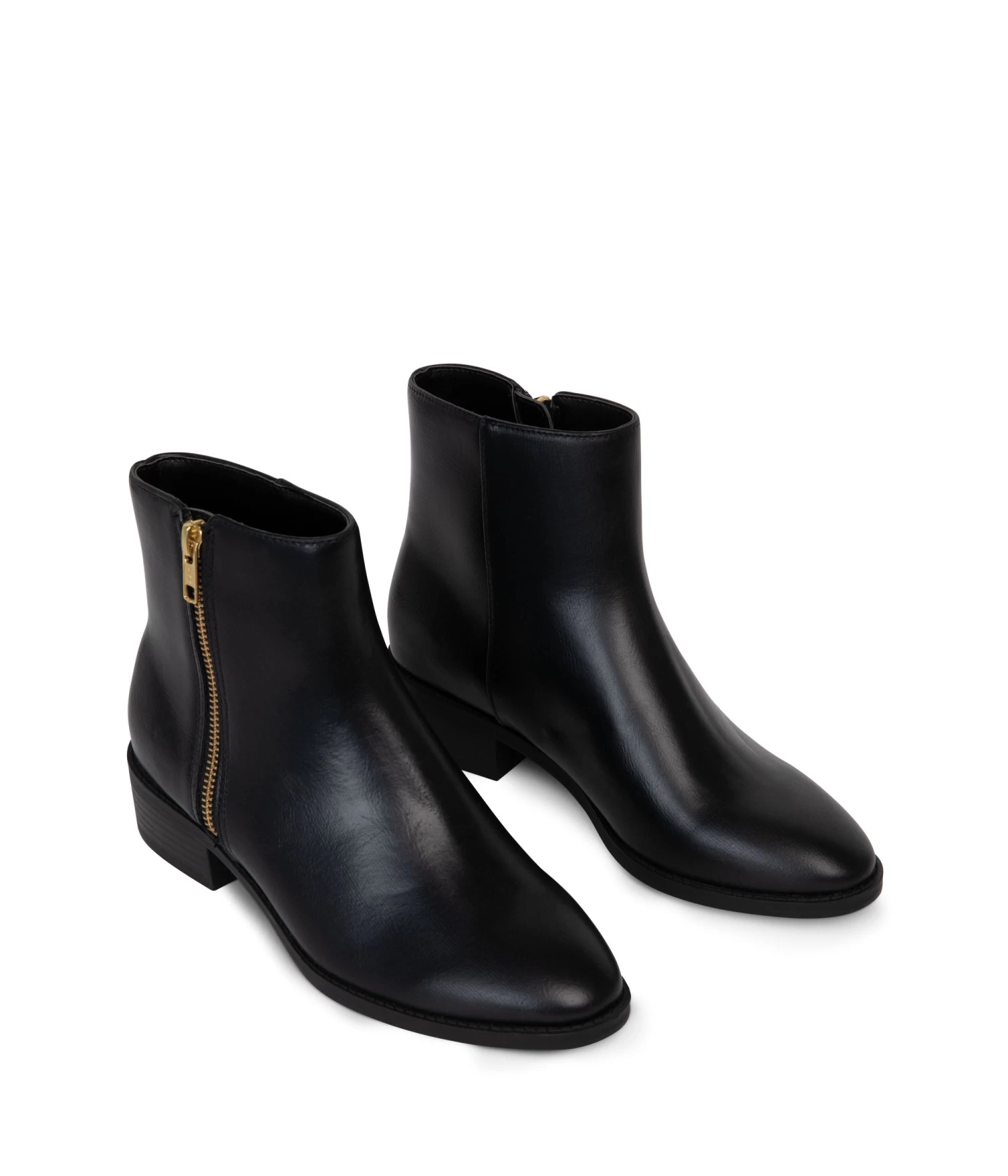 Women’s simple bootie with YKK contrast metal zipper detail.