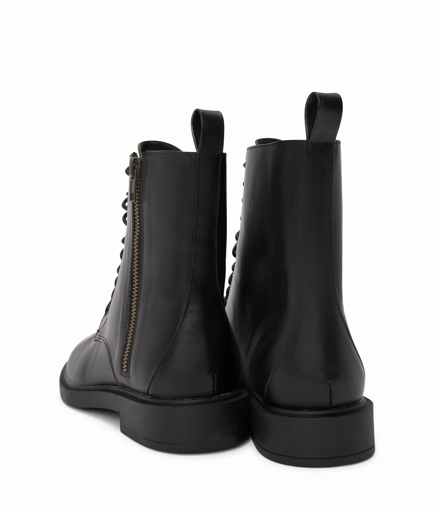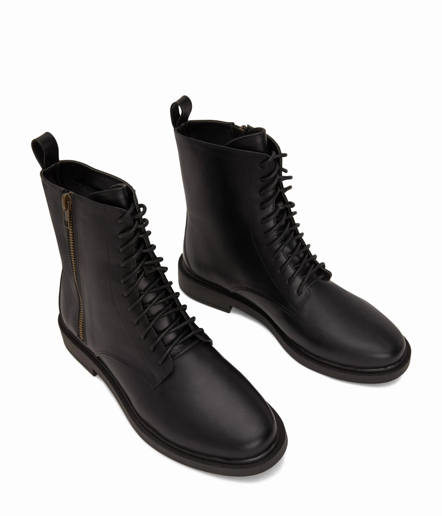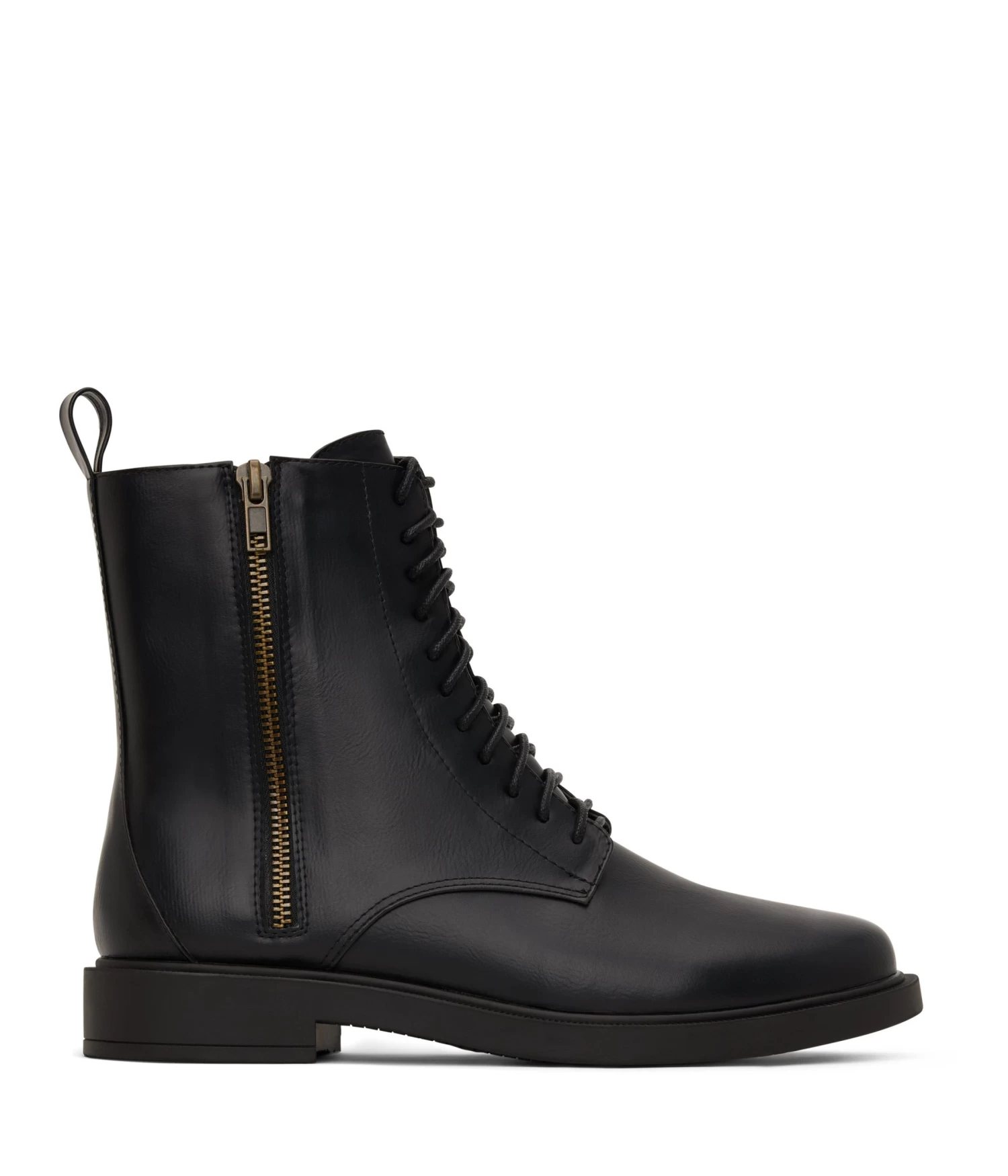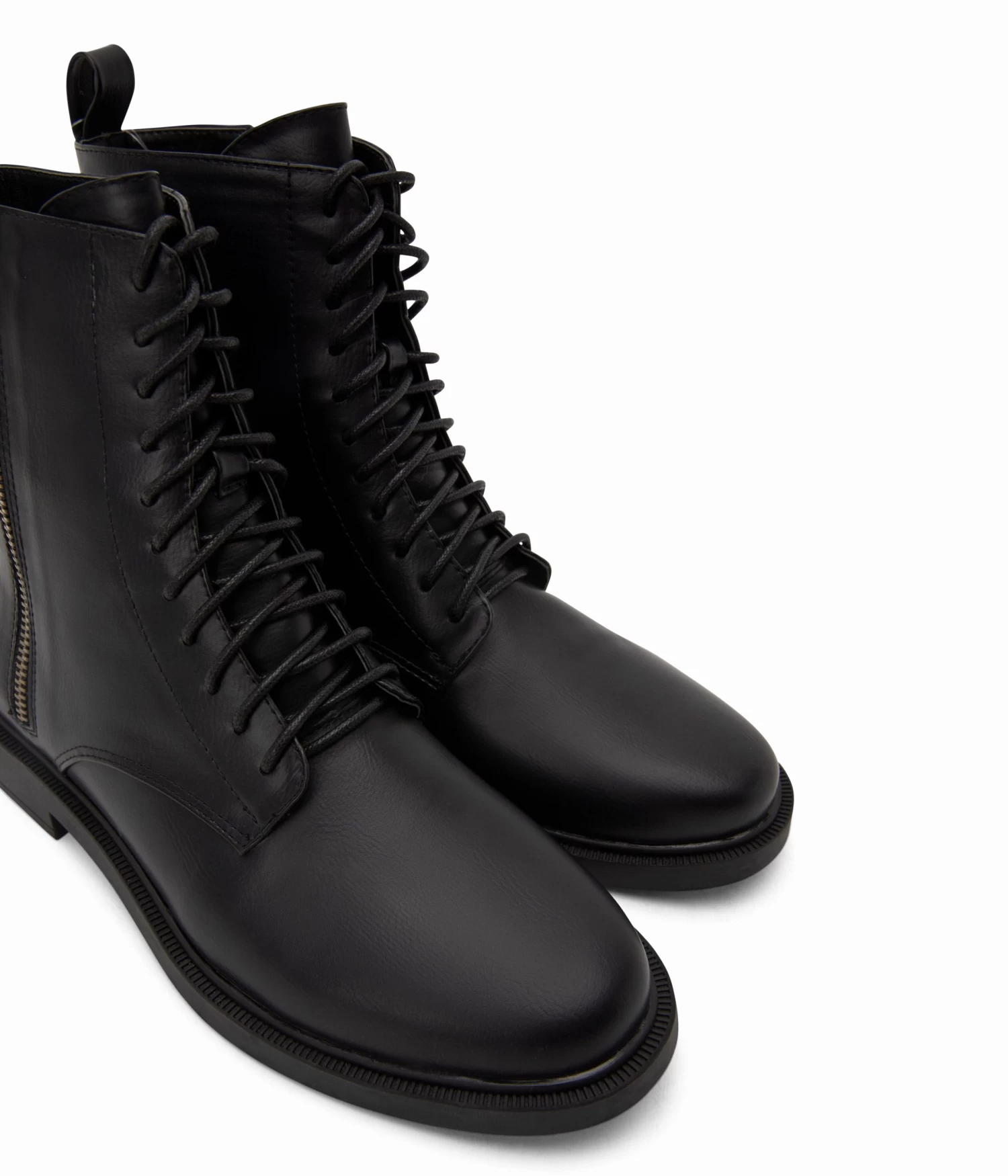 Women’s zip-up bootie with lace-up function and simple outsole.