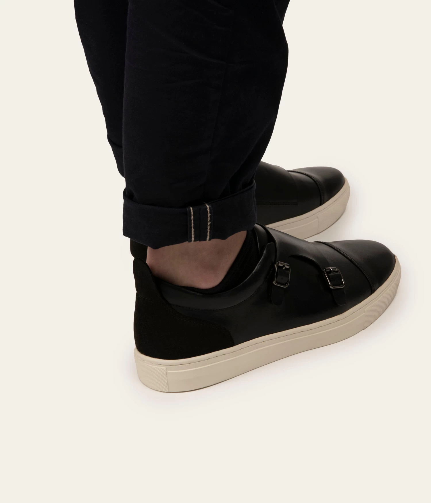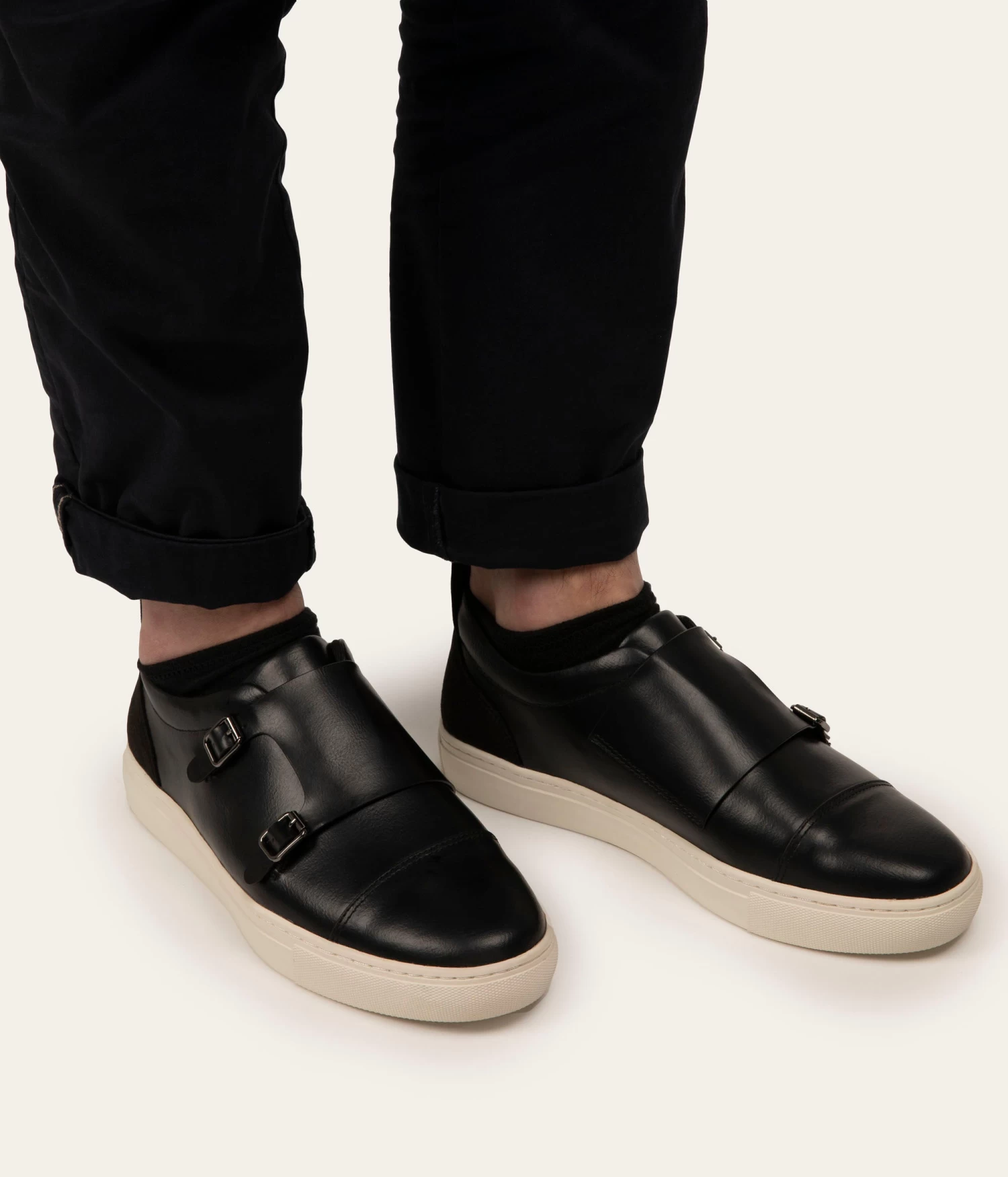 Men’s sneaker with classic double buckel detail and snap function for easy wear.