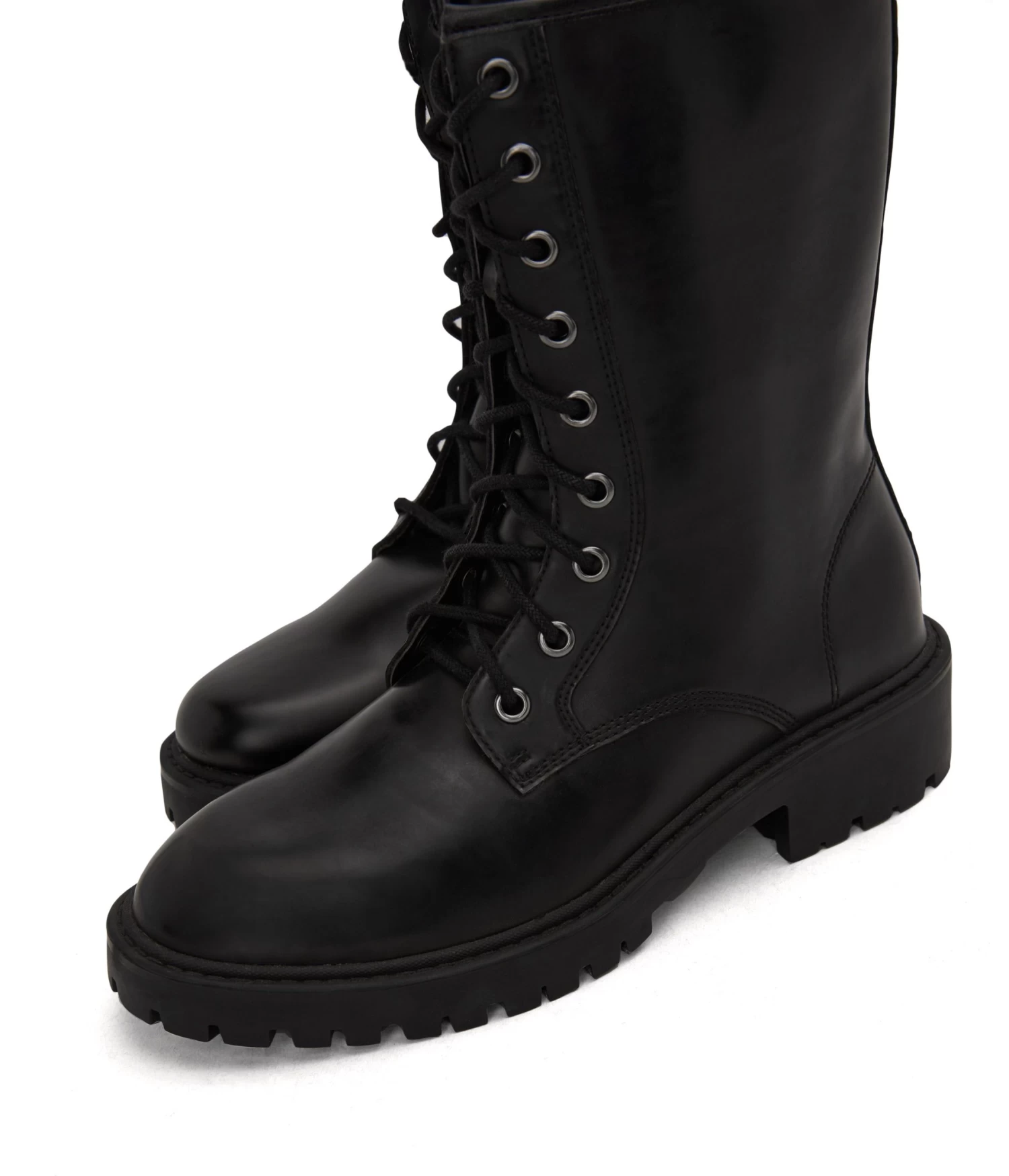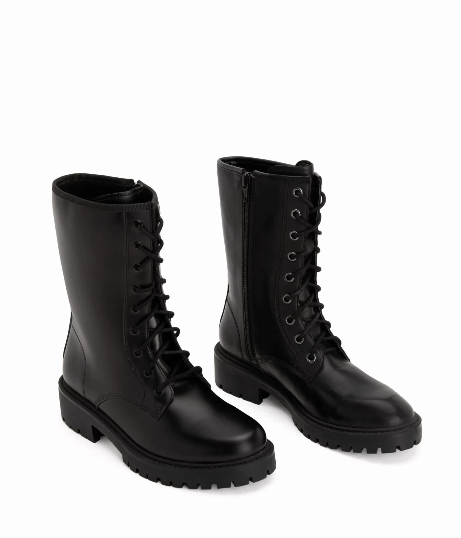 Women’s lace-up combat boot with a rounded toe and zipper closure.