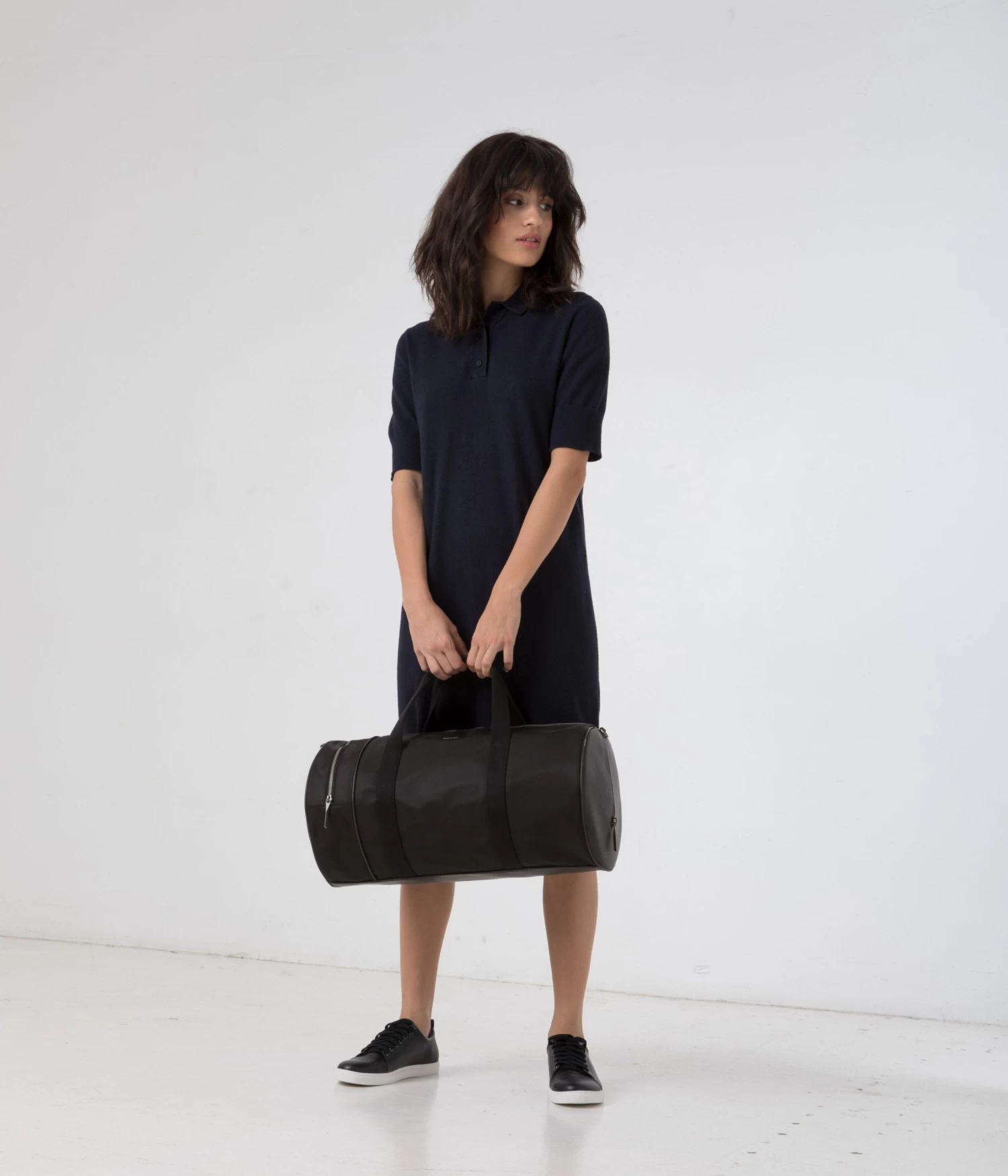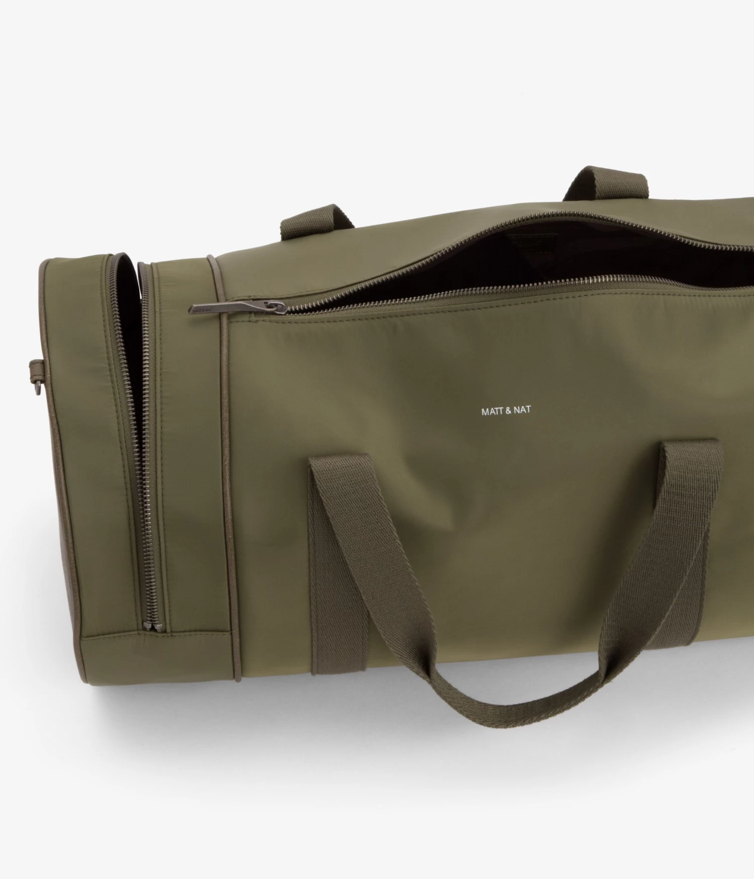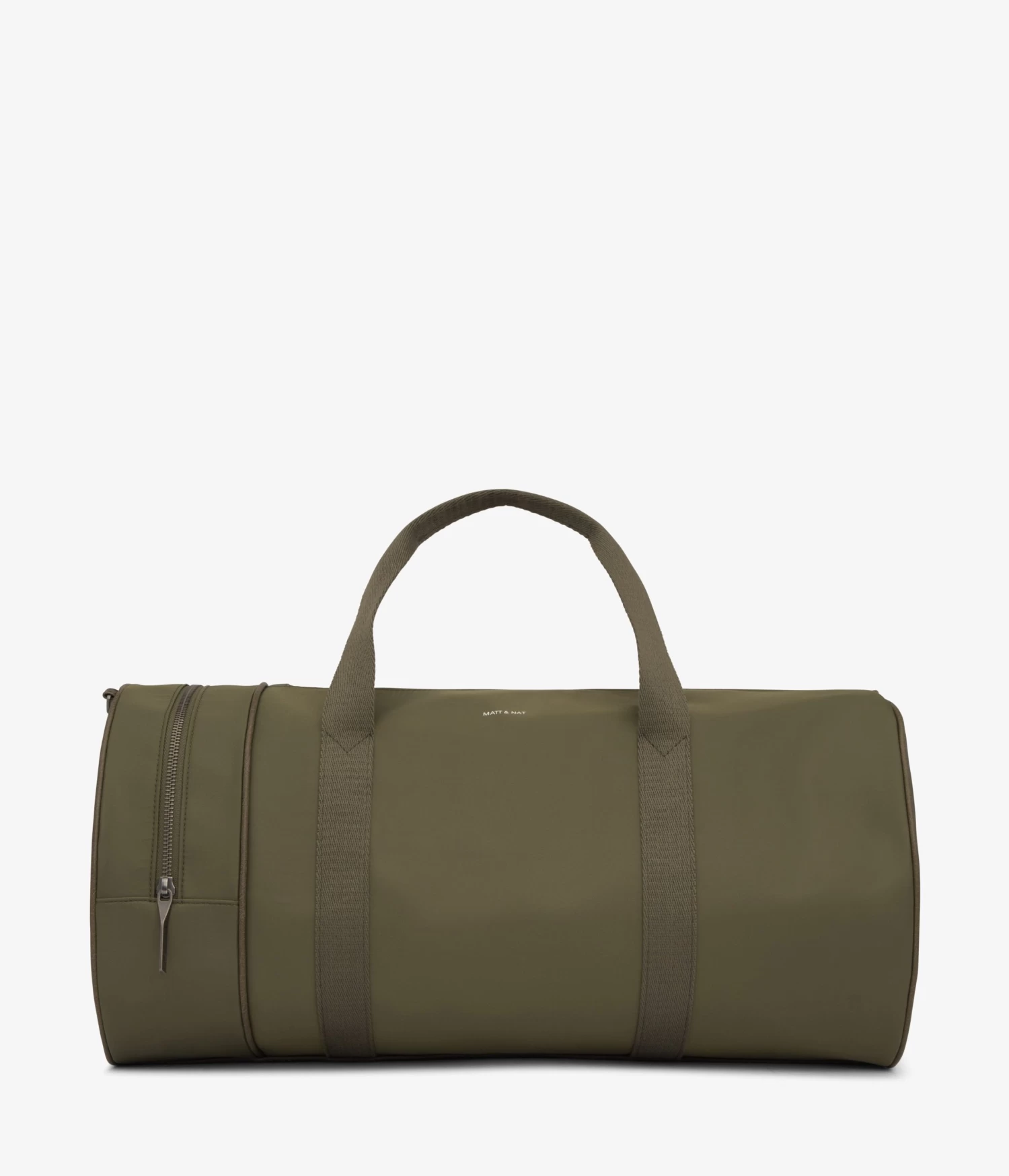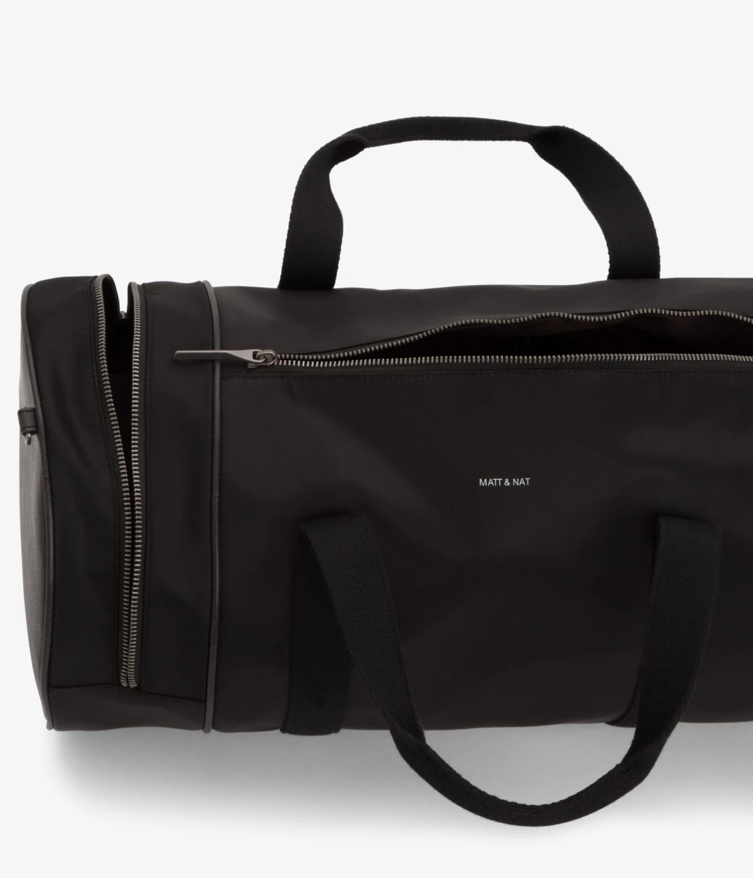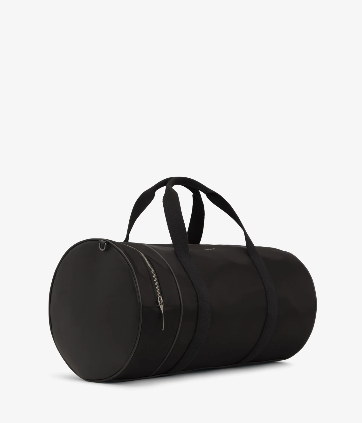 Nylon rounded gusset duffle bag with single-side metal zipper pocket detail and center zipper opening. Comes with adjustable/removable crossbody strap and standard patch logo and cell phone slip pocket detail interior, zip pocket compartment on the back wall of interior.