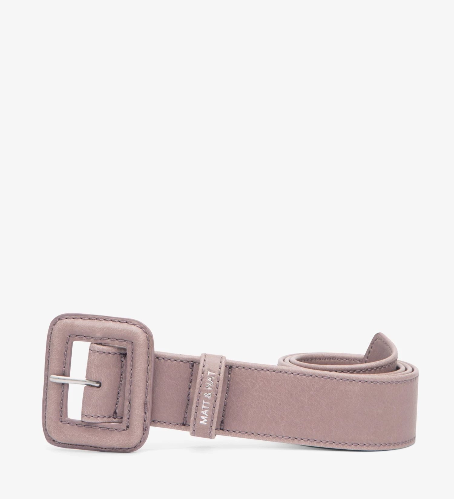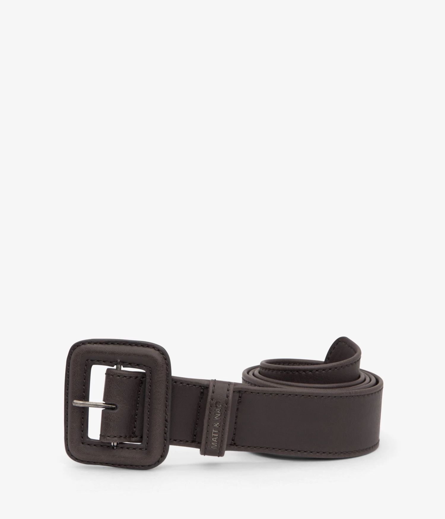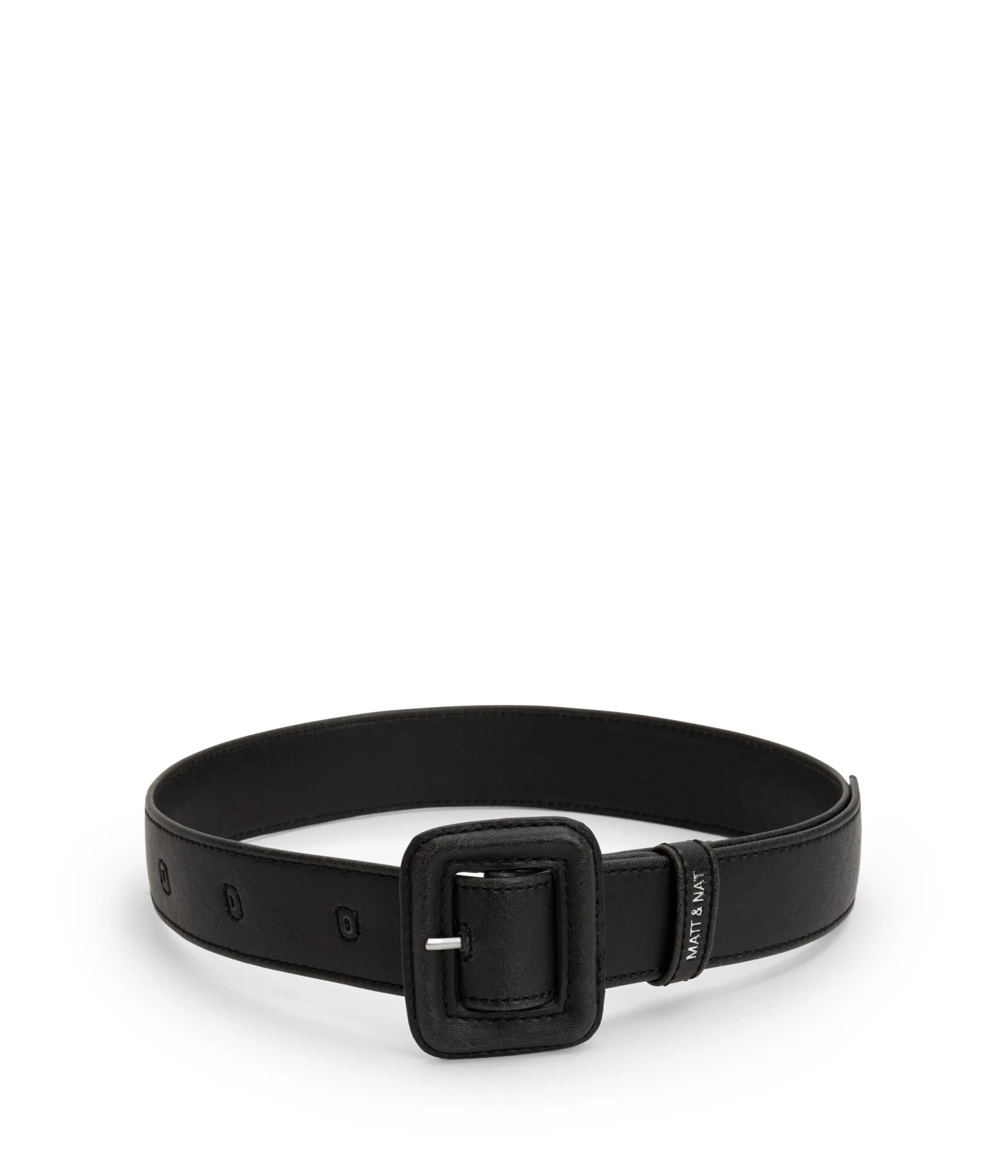 High-waisted belt with large matching square buckle.