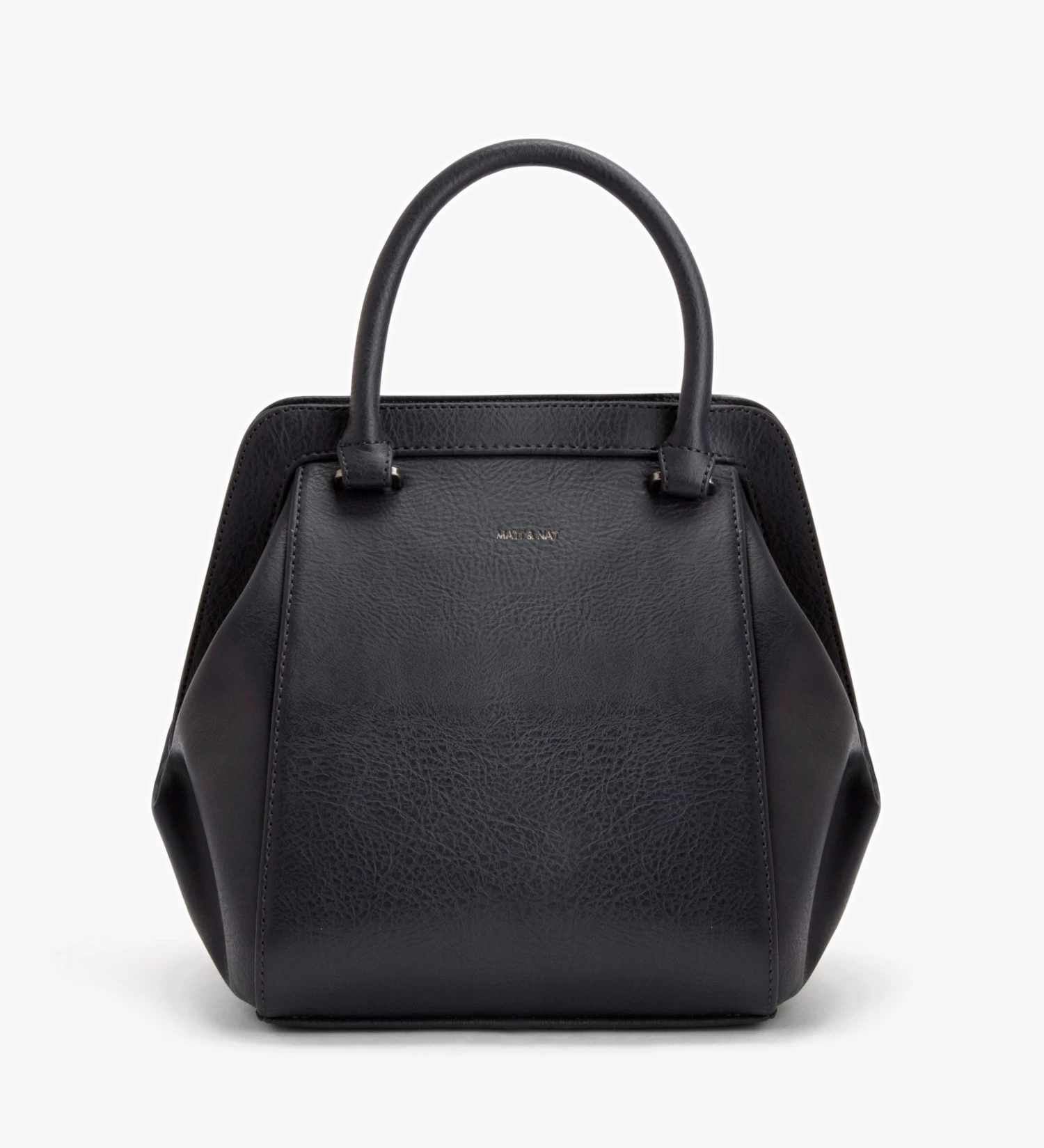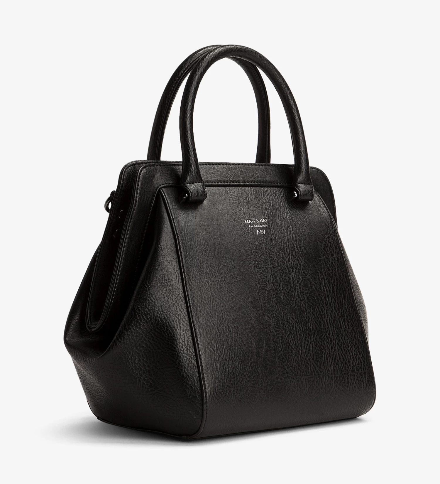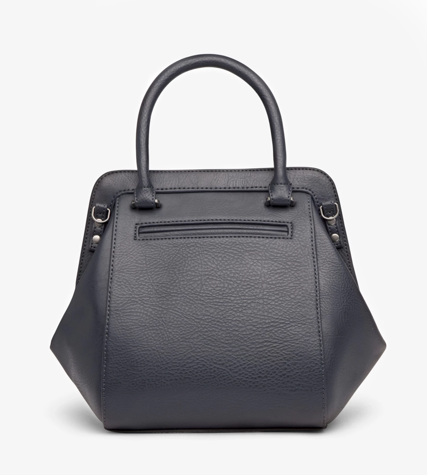 Structured doctor handbag that can be worn crossbody with removable and fixed length strap. Top frame zipper closure and back slit pocket.