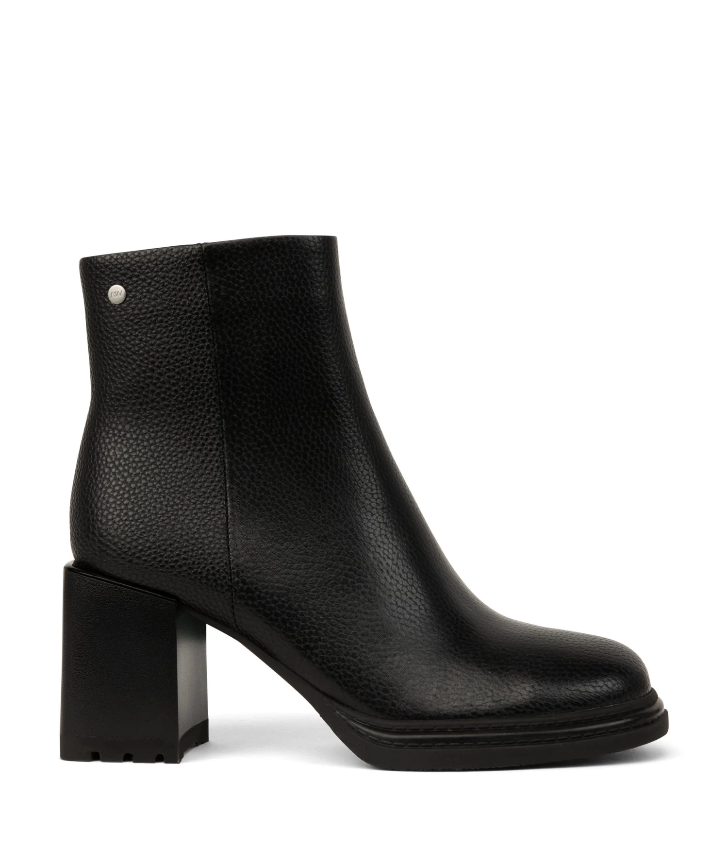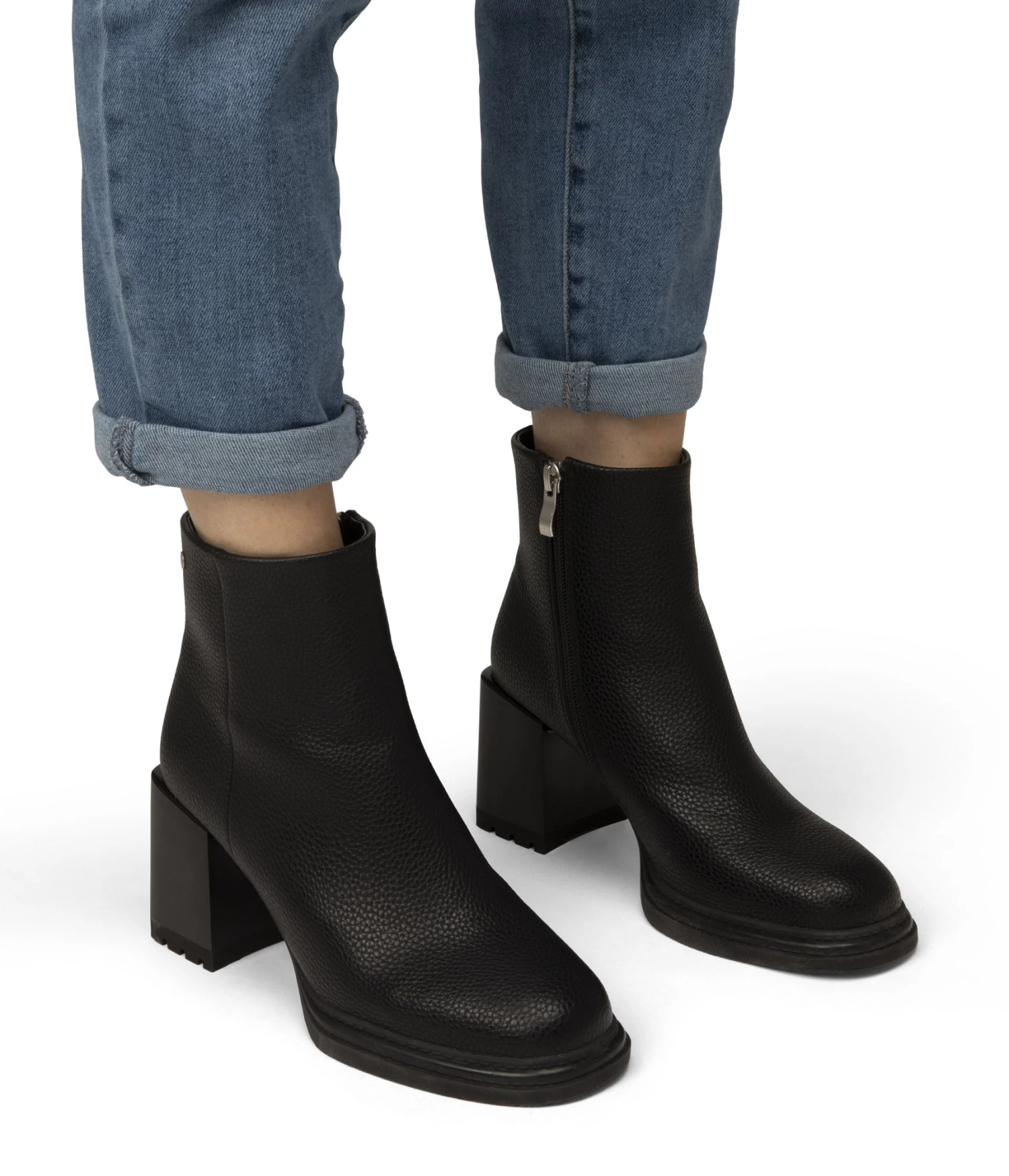 Women’s high-heel boot with square toe shape. YKK zipper.