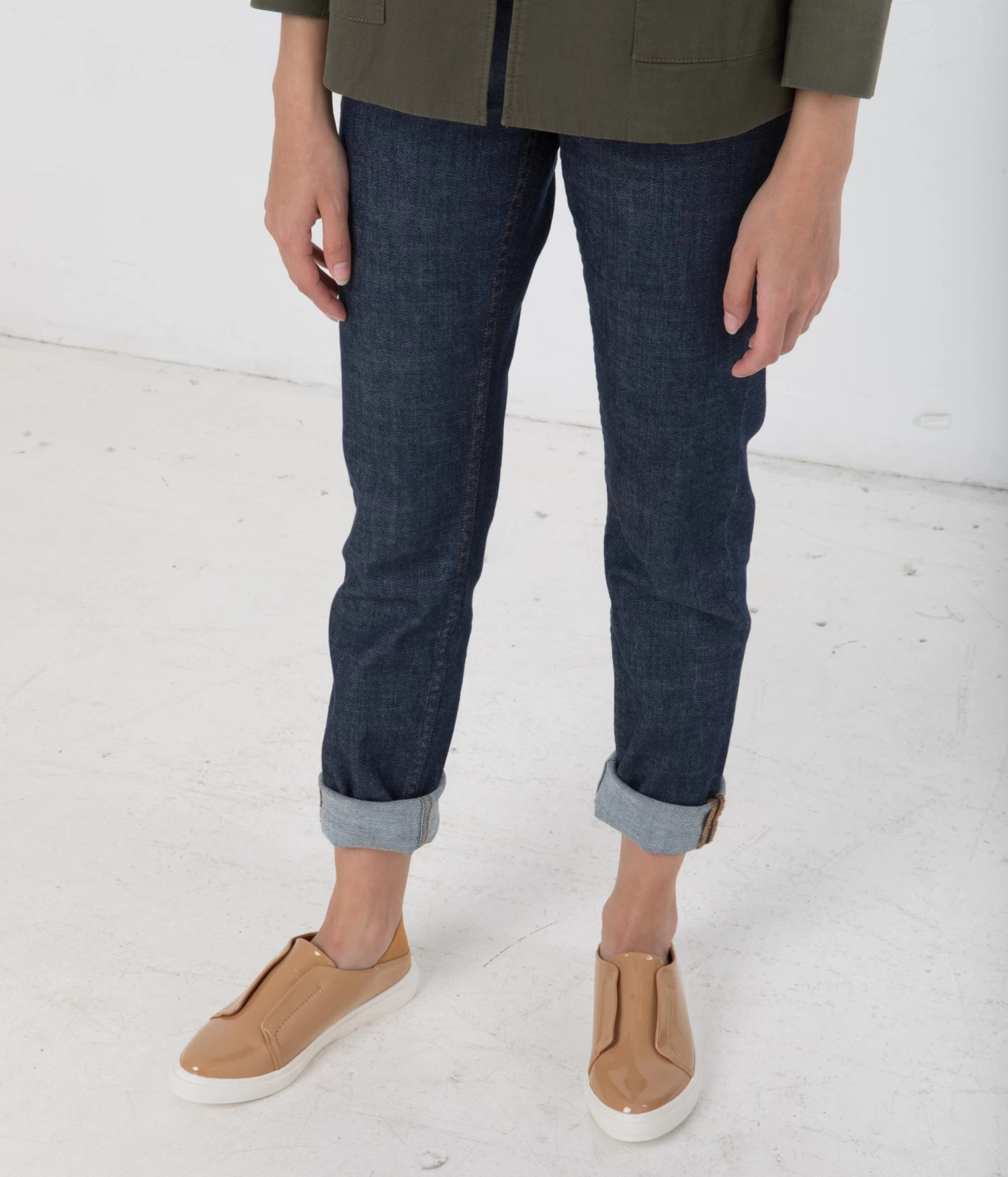 Slip on sneaker with material blocking detail.