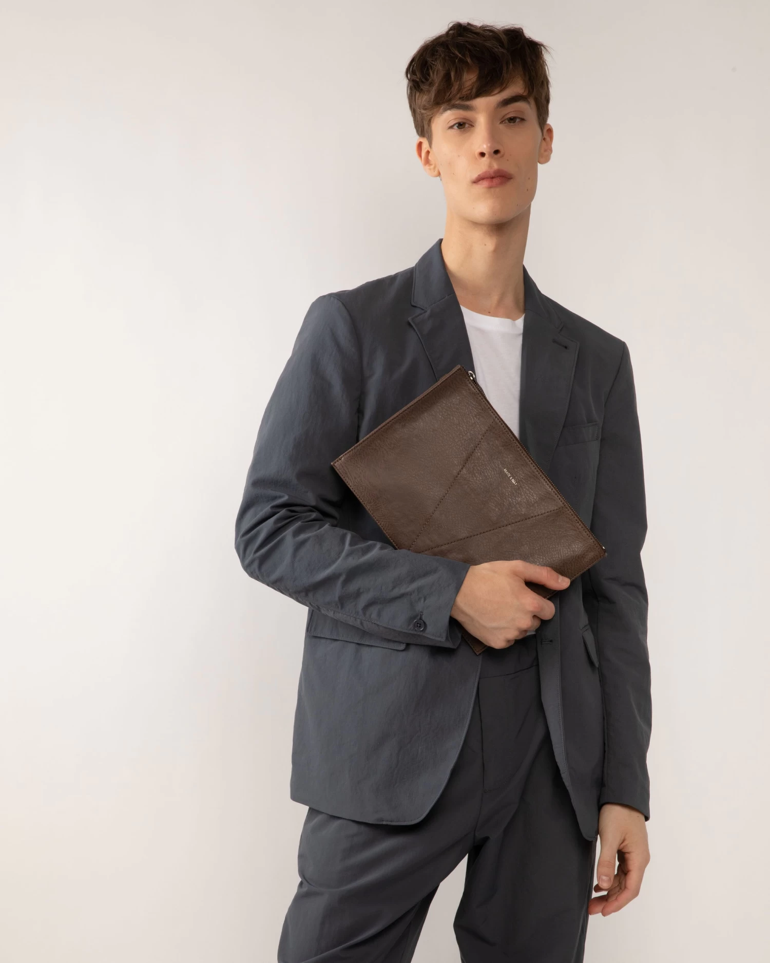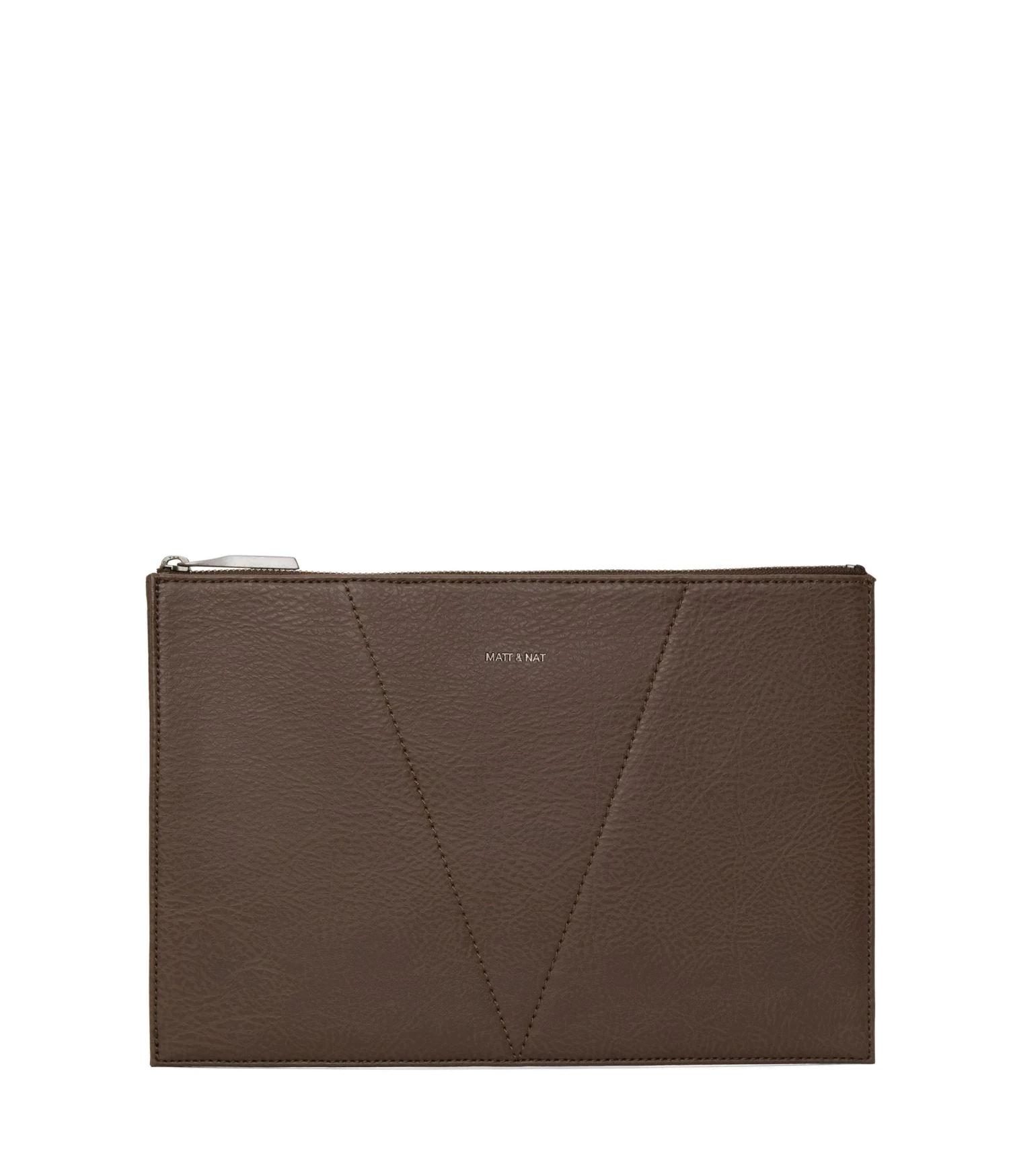 Pouch with top zip closure and gusseted side detail.